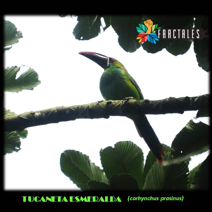 Una enorme alegría me invadió, no me cabía duda, era LA TUCANETA; fue inevitable echar mano a la cámara y salir rápidamente en su búsqueda, con la mirada al contraluz hacia lo alto. Haciéndole señas a mi acompañante e invitándola a seguirme, pisando suave y haciendo silencio. Tal vez conscientemente sabia ya hacia donde buscar, ya que esta era la segunda vez que tenía yo el placer de su encuentro, meses atrás me deleite viéndola comer semillas del Yarumo.