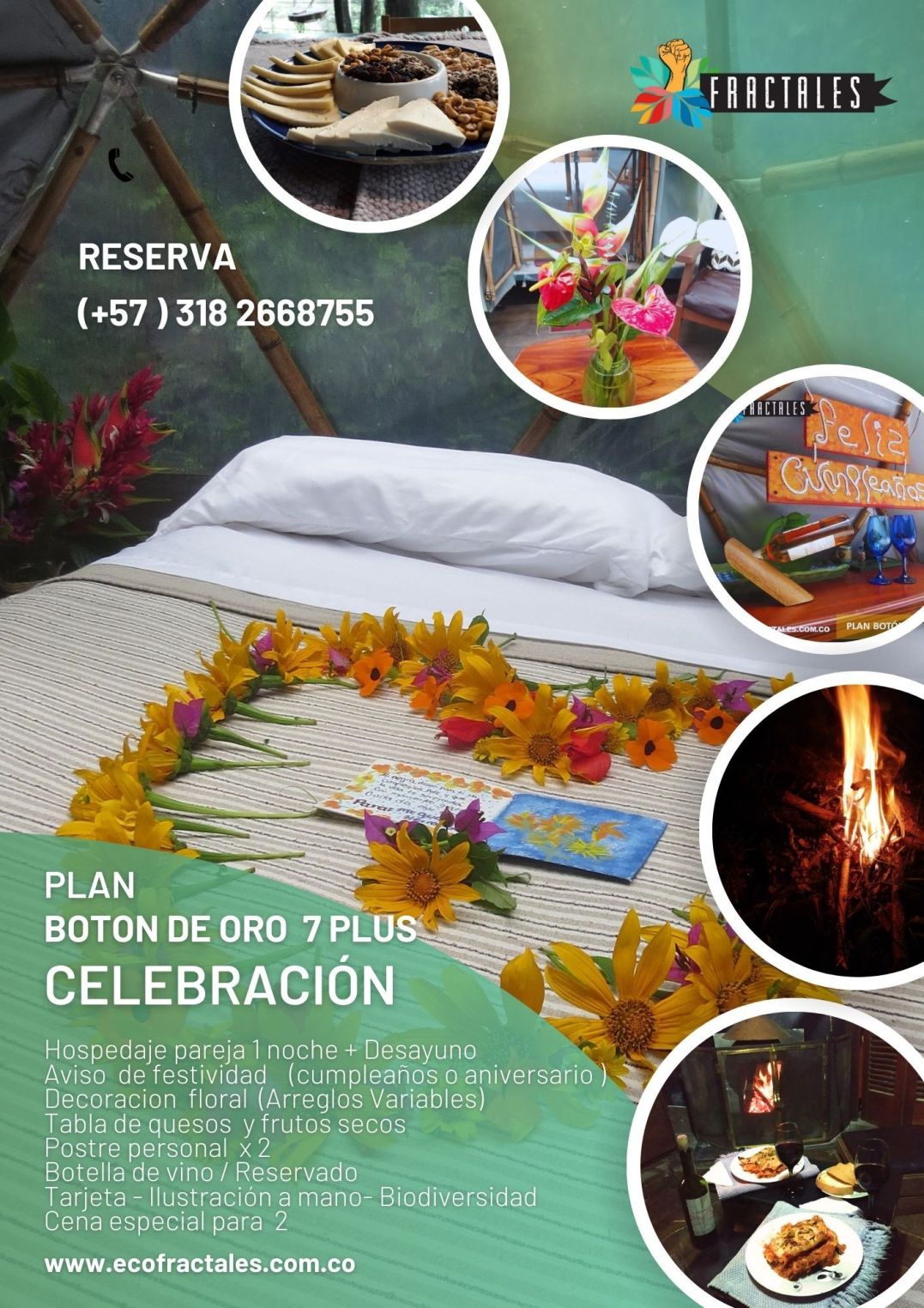 PLAN BOTON DE ORO 7 PLUS - CELEBRACION $490.000 / HOSPEDAJE DOMO 2 / 2 PERSONAS + Desayuno + Decoración especial ( Arreglo floral y aviso de celebración ) /Botella de vino - Reservado / Postre personal x 2 / Tabla de quesos y frutos secos / Tarjeta ilustracion a mano. / Cena especial.