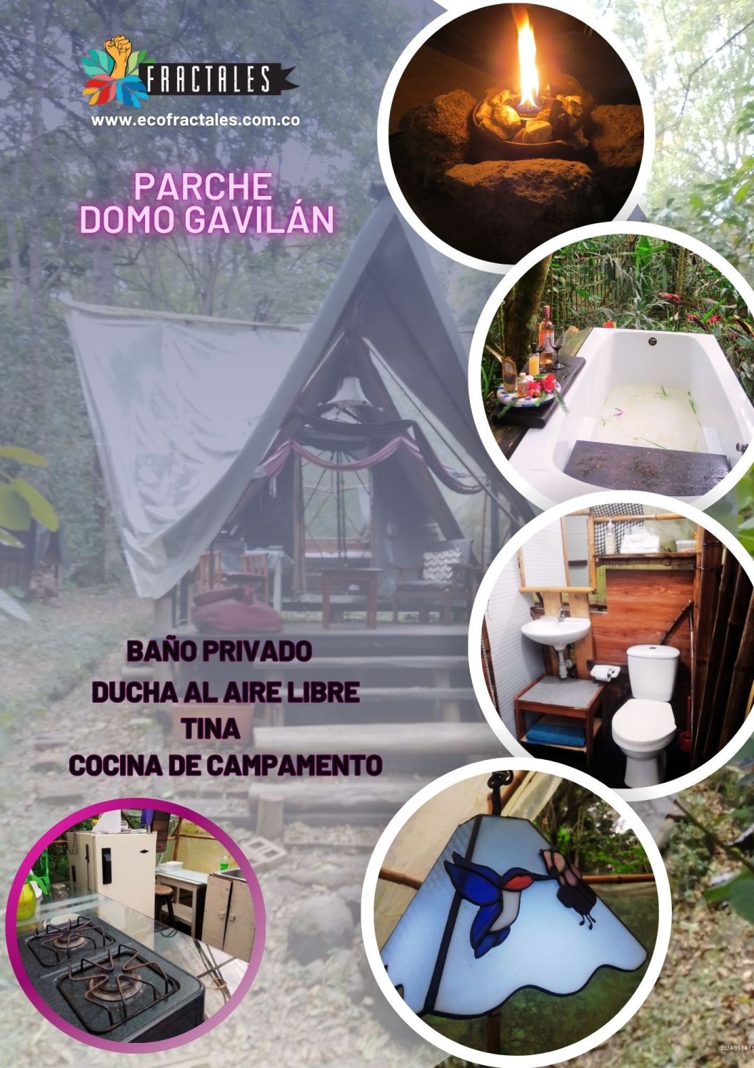 EL PARCHE DEL DOMO DEL GAVILAN Domo artesanal en bambú, Diámetro 3 mts + bóveda de cruz 5m . Para persona sola o pareja, cama semi doble. Antesala , Hamaca y zona de trabajo. En medio de huerta/bosque . A 50 mts del la vivienda principal. Lugar para fogata con Provision de leña . Baño privado con ducha al aire libre con agua al caliente. Wifi. cocina de campamento. Derecho a uso de Zonas comunes . VER PLAN DE PRECIOS MAS ABAJO